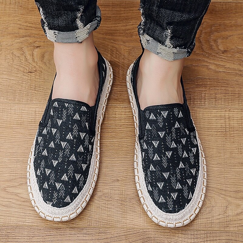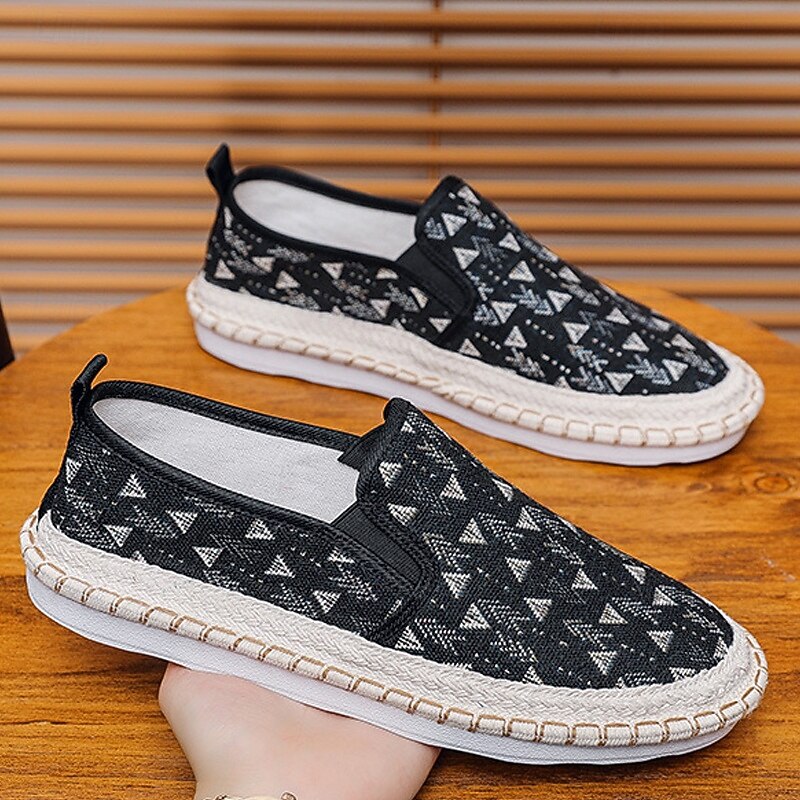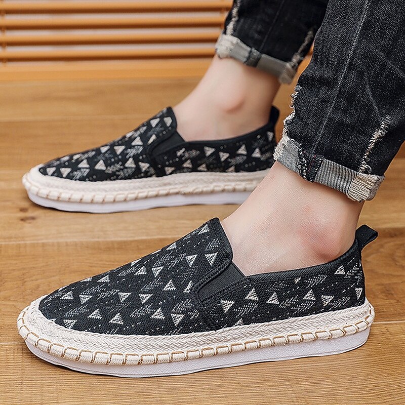 HOT ! Men's Light Blue Slip-On Canvas Shoes with Braided Sole - Casual and Comfortable Footwear for Summer, Beach and Vacation