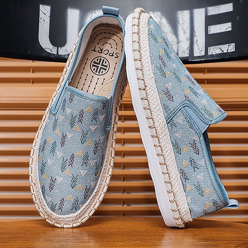 Men's Light Blue Slip-On Canvas Shoes with Braided Sole - Casual and Comfortable Footwear for Summer, Beach and Vacation 19