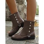 Highlights - Made with high-quality faux leather - Features a sophisticated block heel for added comfort and stability - enduring round toe shape for a timeless look - Durable rubber outsole for long-lasting wear - Stay ahead of the trends with combat boots in 2025