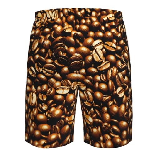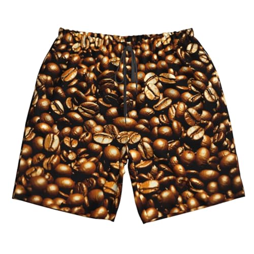 HOT ! Funny Roasted Coffee Beans Print Stylish Men Beach Shorts Lightweight Cozy Swim Trunks Summer Casual Outings Holiday