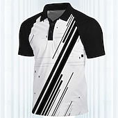 More information about Men's Striped Sports Polo Shirts Golf Shirt Short Sleeve Polo Shirts Collared Shirts Casual Sportswear Vacation Wear 3D Print Buttons Spring & Summer Black