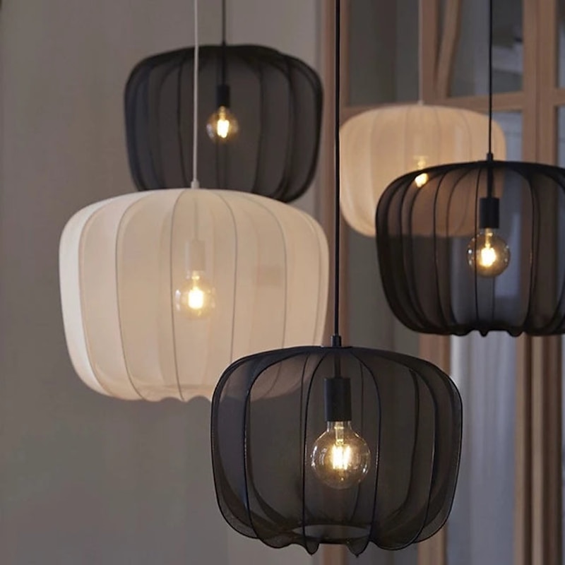 LED Pendant Light Wabi-sabi Fabric Black White Unique Metal Modern Cord Adjustable Pendant Lamps Kitchen Island Lighting for Dining Room Bedroom Hallway Living Room110-240V 12