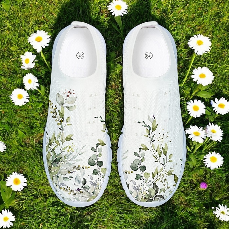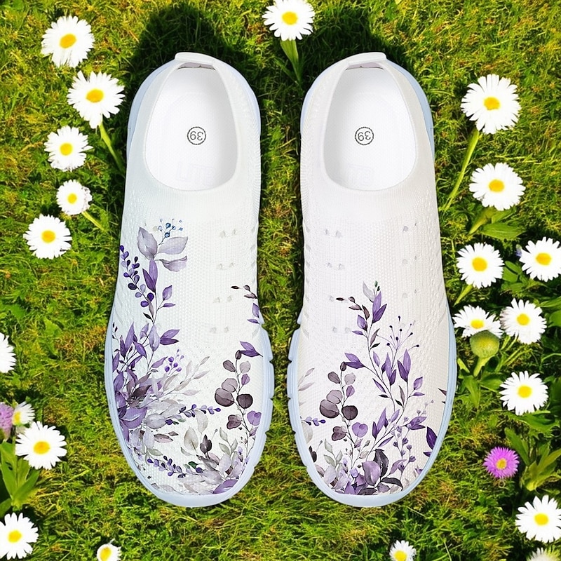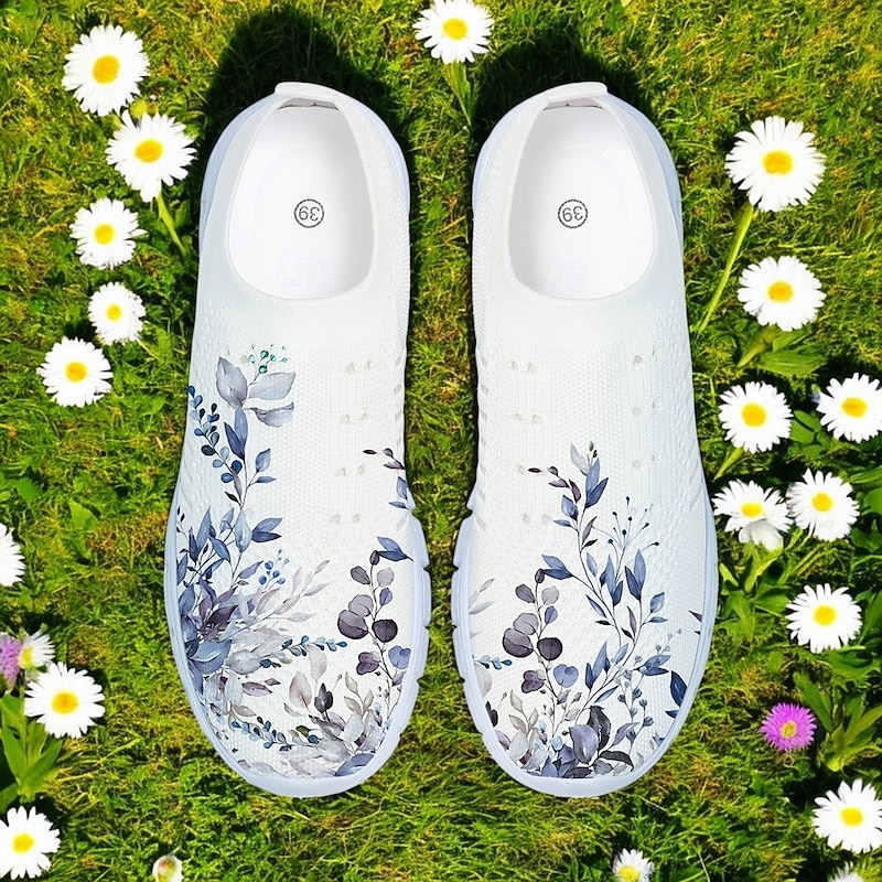 Women's Floral Mesh Slip-On Sneakers – Lightweight Breathable Walking Shoes for Casual Wear, Travel and Outdoor Activities 24