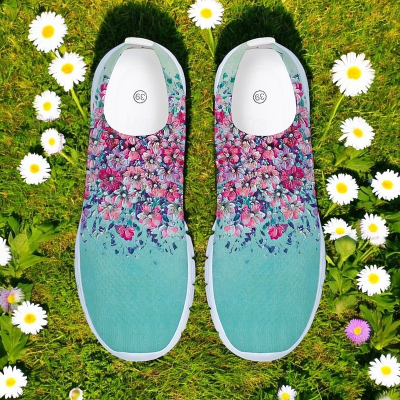 Women's Floral Mesh Slip-On Sneakers – Lightweight Breathable Walking Shoes for Casual Wear, Travel and Outdoor Activities 4
