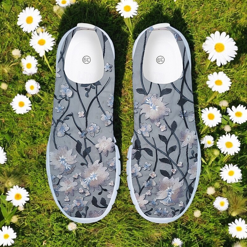 HOT ! Women's Floral Mesh Slip-On Sneakers – Lightweight Breathable Walking Shoes for Casual Wear, Travel and Outdoor Activities