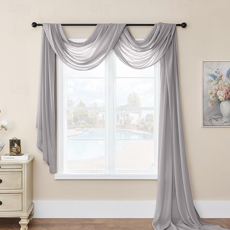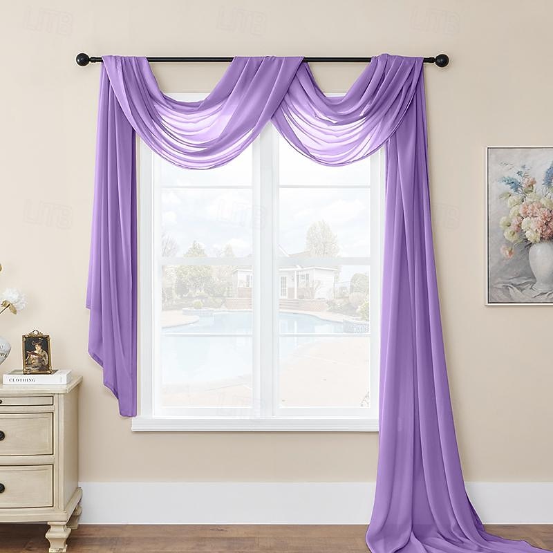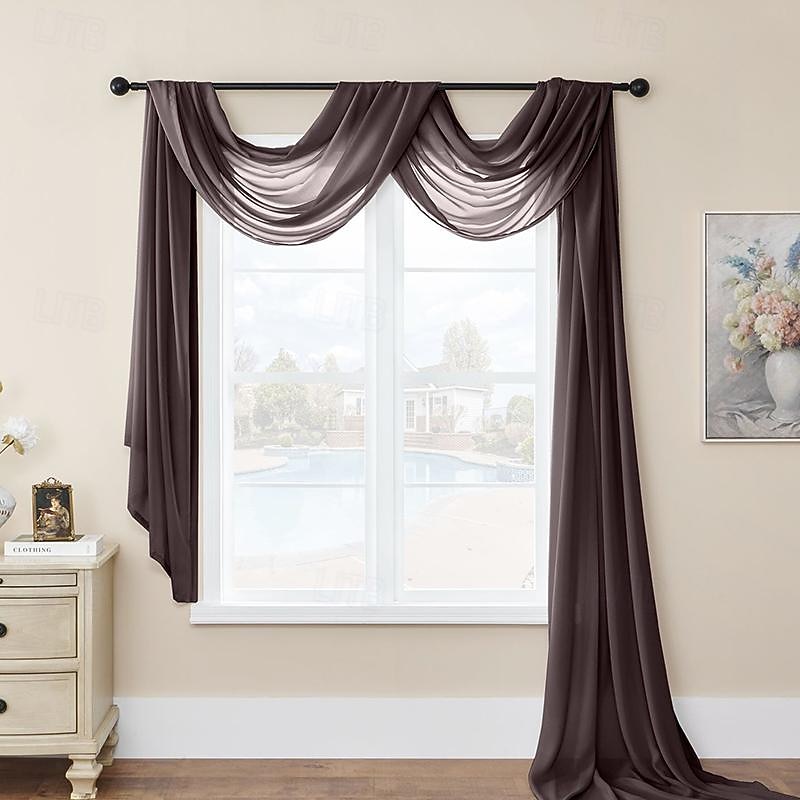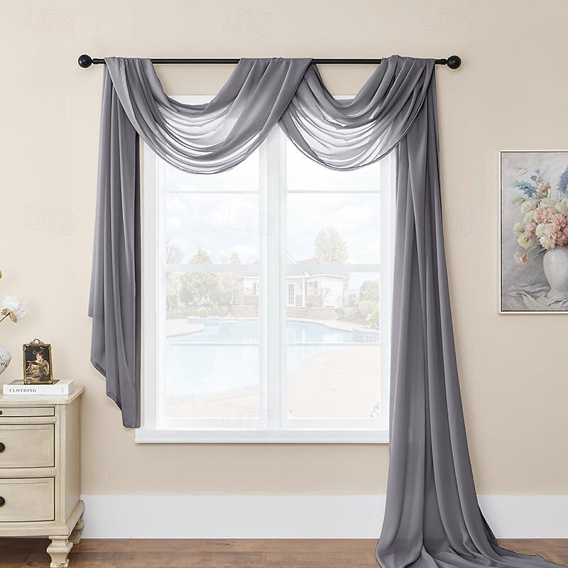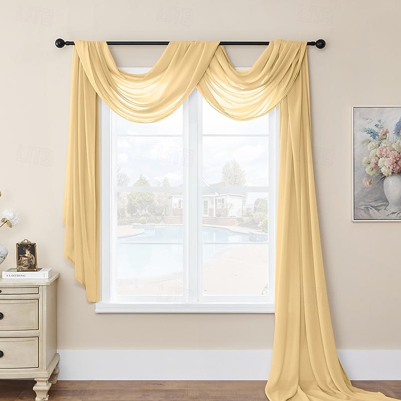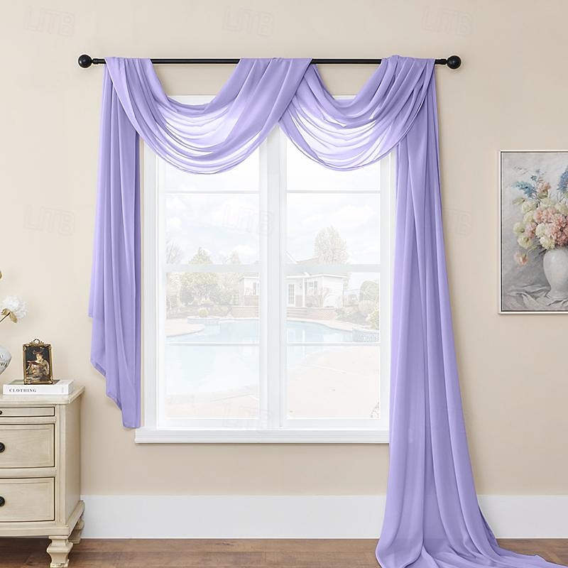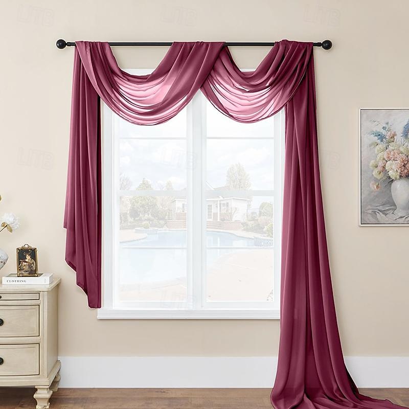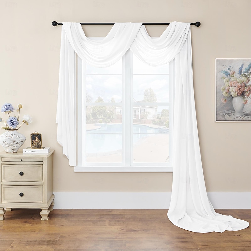 Valentine's Day Luxury Window Scarf Sheer Voile Elegant Topper Long Window Valance Solid Window Treatment Swags Drapes for Window Ceremony Wedding Canopy Bed 1