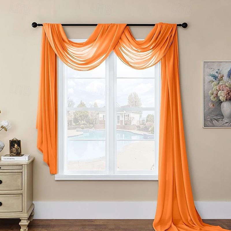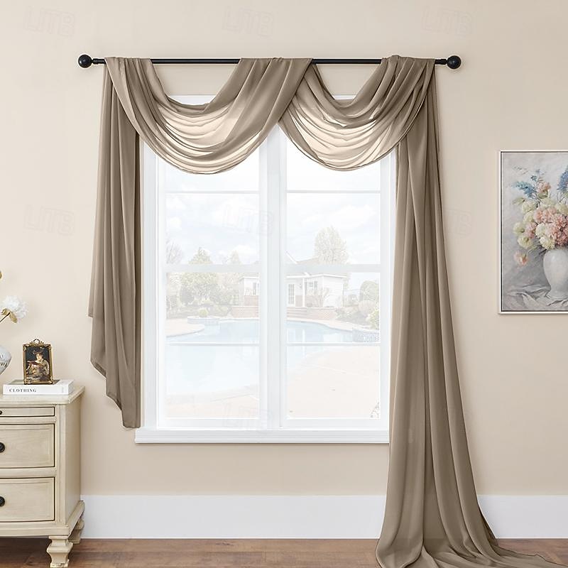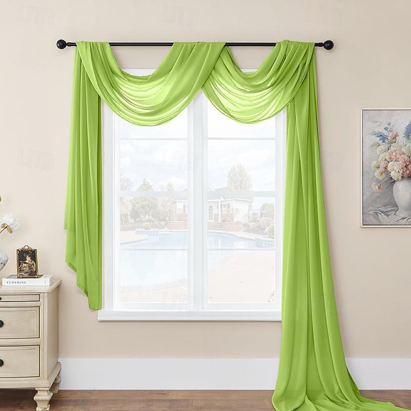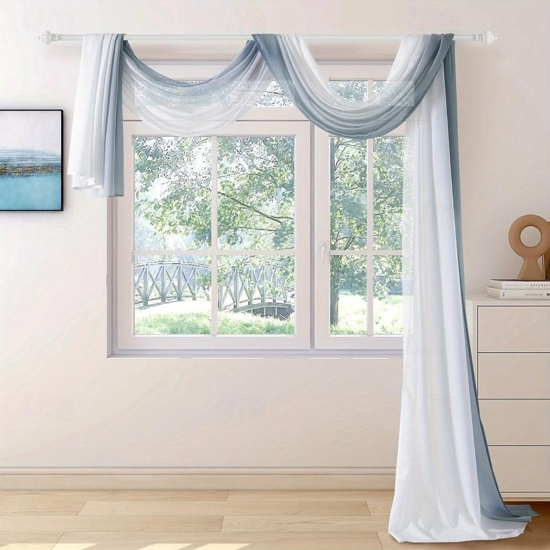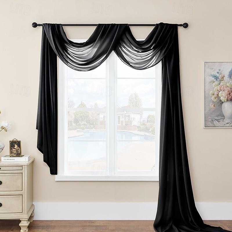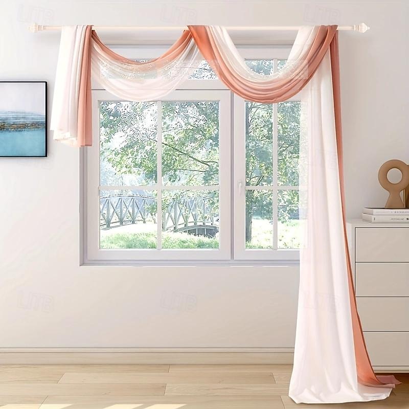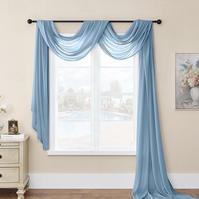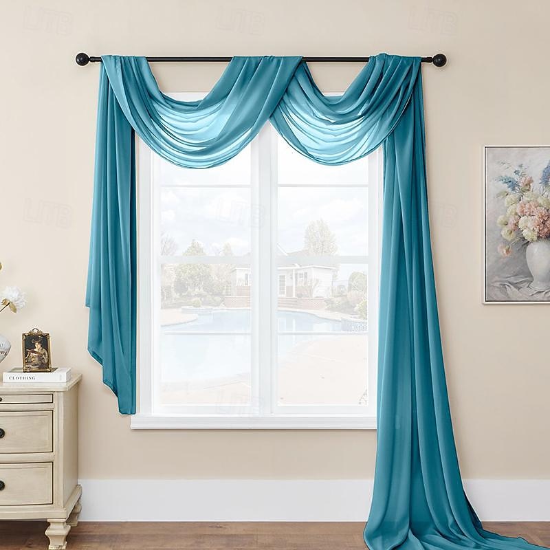 Valentine's Day Luxury Window Scarf Sheer Voile Elegant Topper Long Window Valance Solid Window Treatment Swags Drapes for Window Ceremony Wedding Canopy Bed 1
