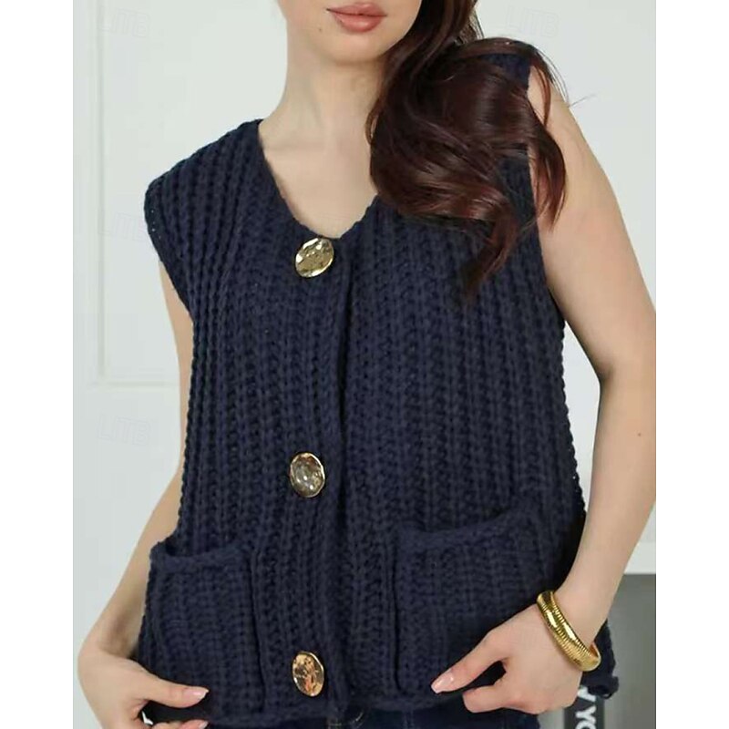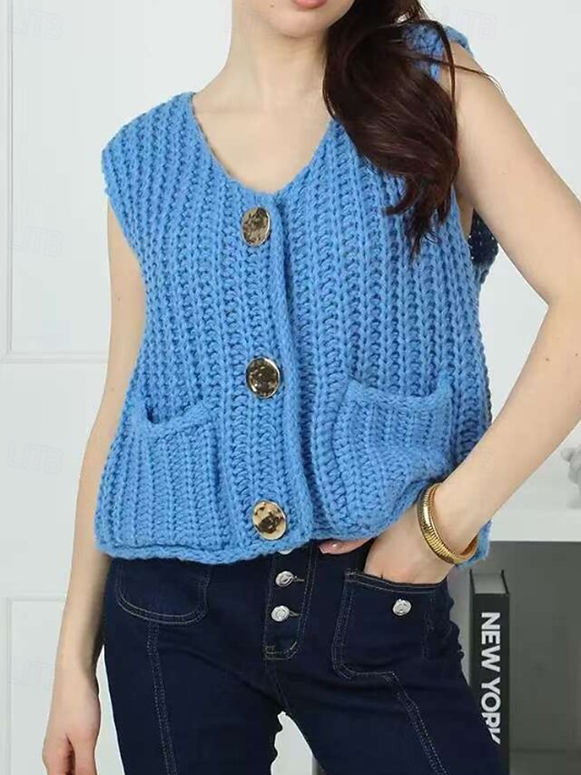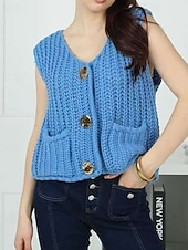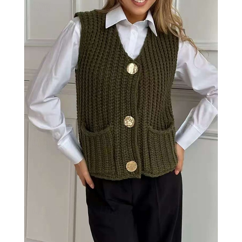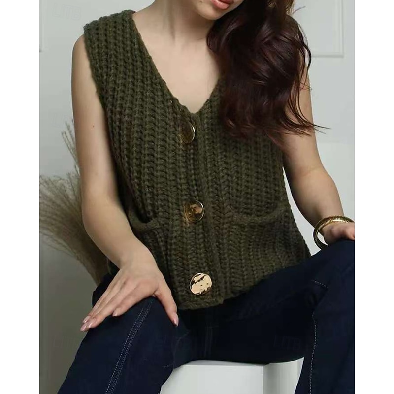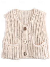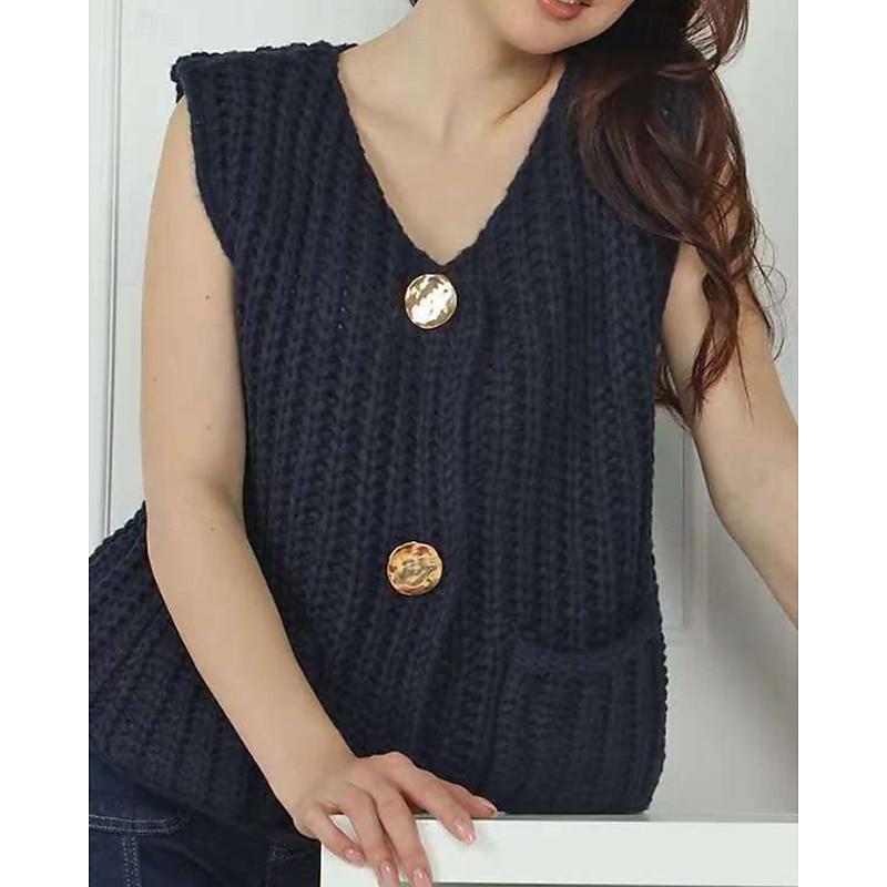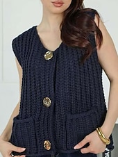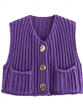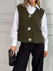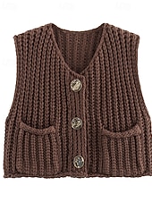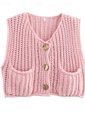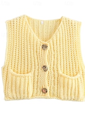 More information about Women's Sweater Sweater Vest Cardigan Streetwear Casual Solid Color V Neck Buttons Knitted Sleeveless Regular Tops Knit Daily Holiday Going out Yellow Pink Fall Winter