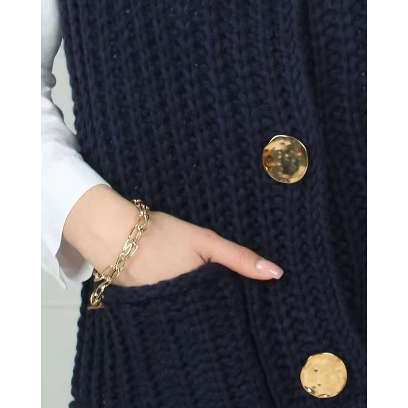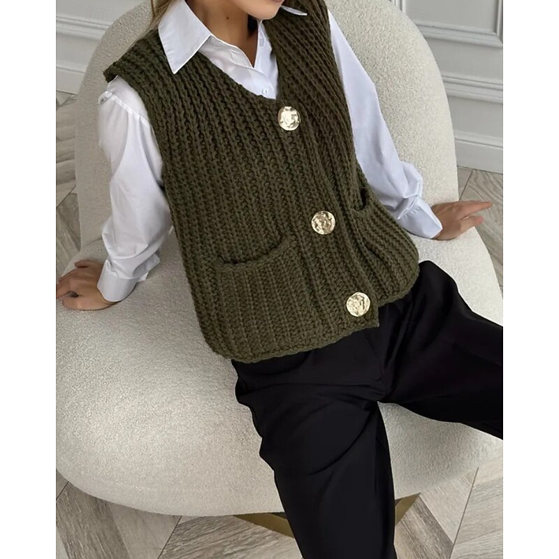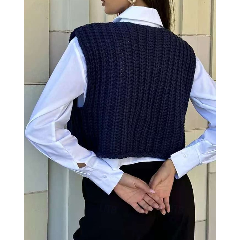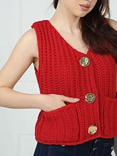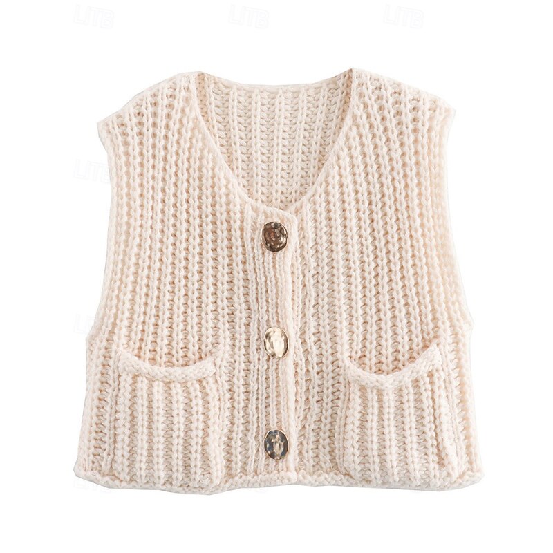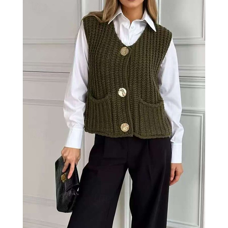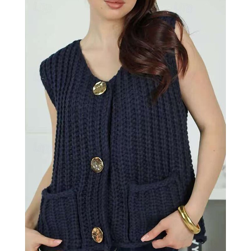 More information about Women's Sweater Sweater Vest Cardigan Streetwear Casual Solid Color V Neck Buttons Knitted Sleeveless Regular Tops Knit Daily Holiday Going out Yellow Pink Fall Winter