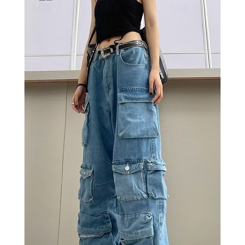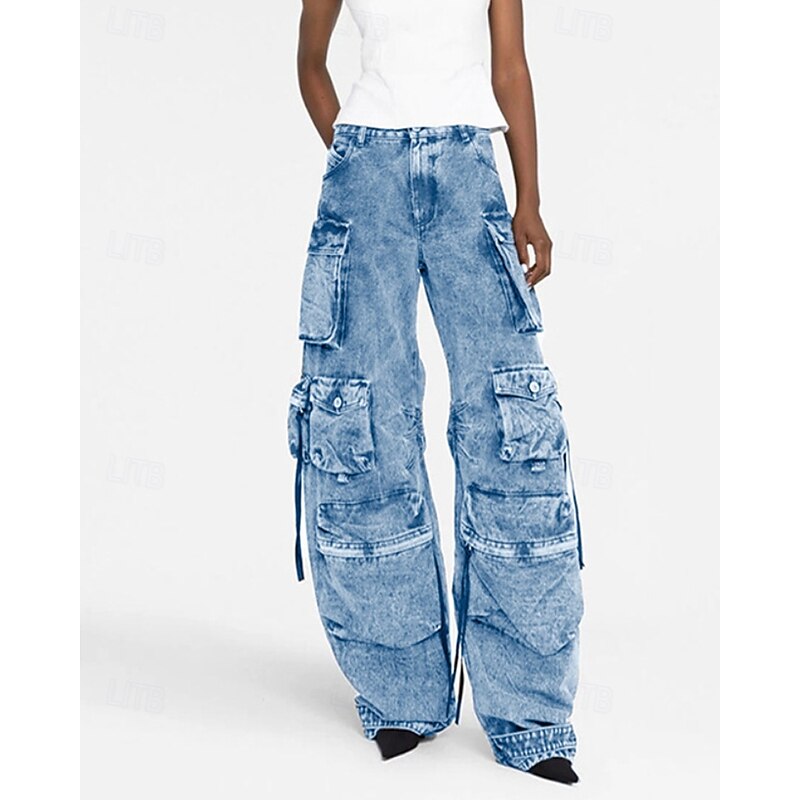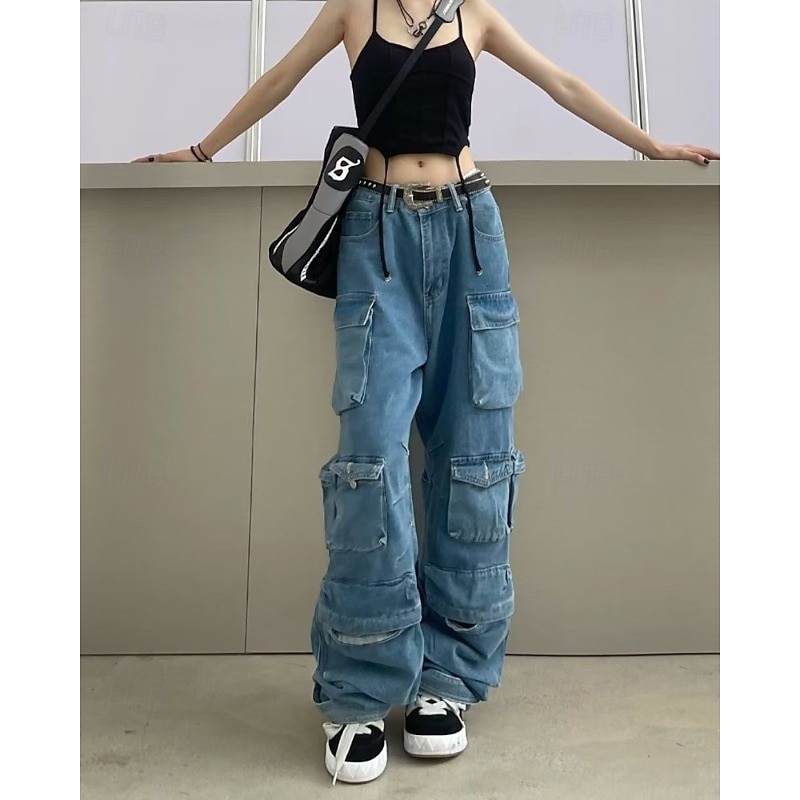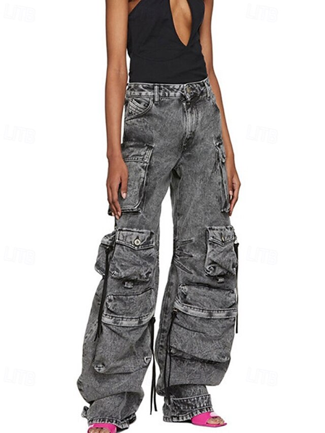 More information about Women's Cargo Pants Fashion Streetwear Full Length Natural Plain Pocket Outdoor Comfortable Street Daily Wear Black Grey Blue Light Grey Fall Regular Fit
