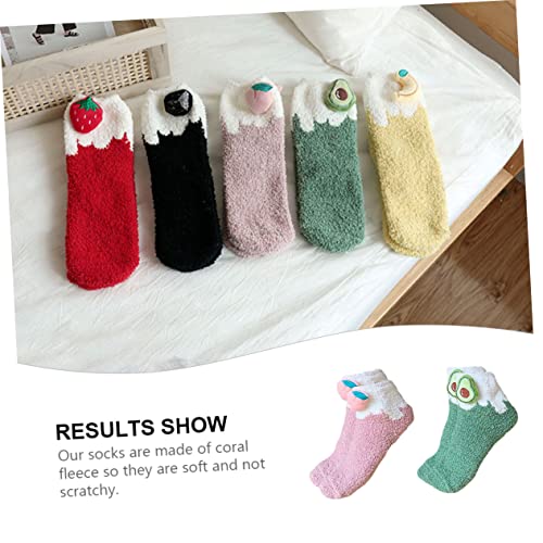 2pairs Cozy Coral Fleece Christmas Socks Cute Fruit Design for Warmth for Parties and Sleep for 5