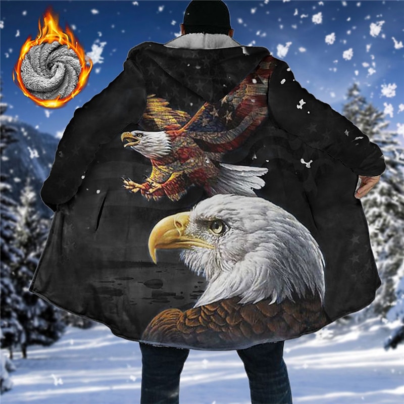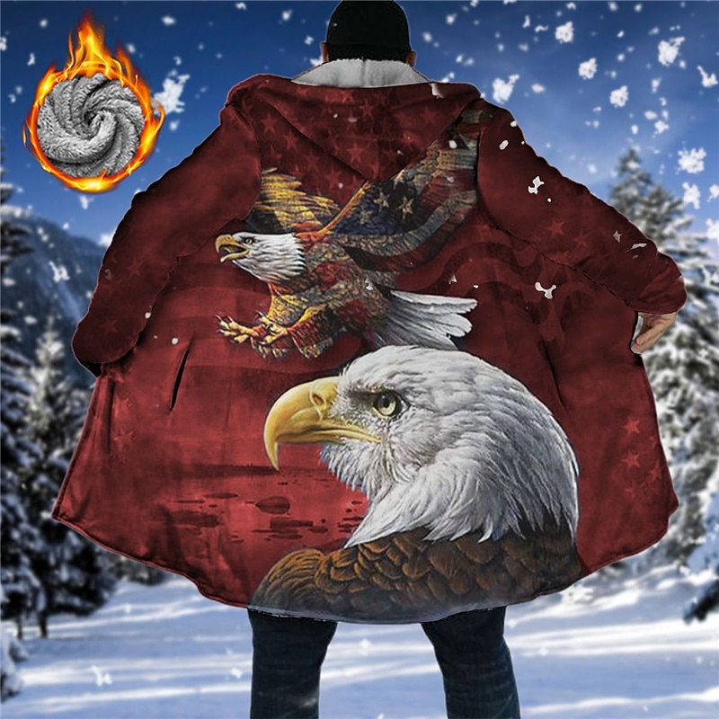 More information about Men's Winter Coat Fleece Jacket Coat Sports & Outdoor Daily Wear Warm Breathable Zipper Pocket Fall & Winter Animal Graphic Prints Fashion Streetwear Hoodie Long Regular Fit Black Red Blue Purple