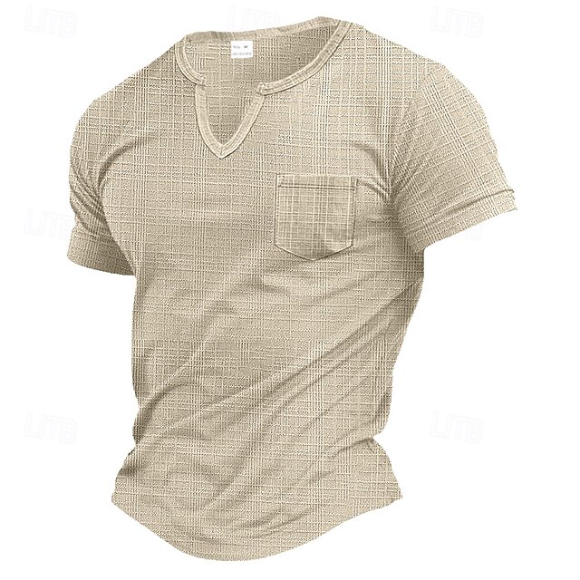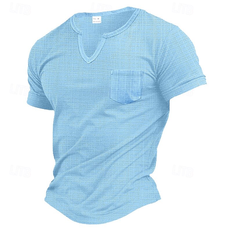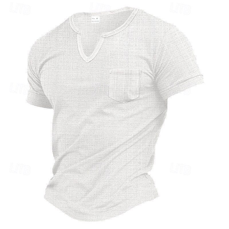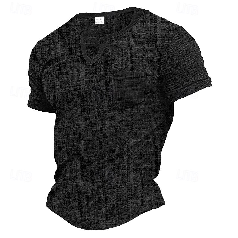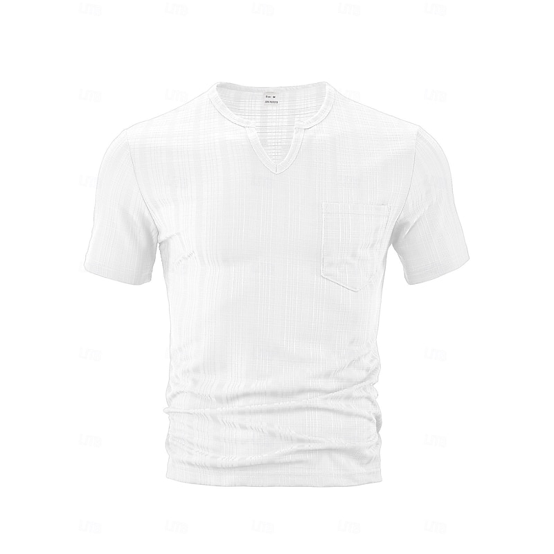 More information about Men's T Shirt Tee Top Short Sleeves V Neck Summer Plain Pit Strip Fashion Designer Pocket Vacation Street Casual Daily Black White Gray Top Tee for Men