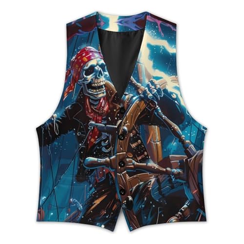 Skeleton Pirate Ocean Storm Novelty Men's Suit Vest Funny Formal Dress Vests Business Waistcoat 1