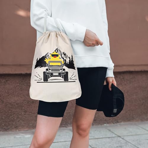 • Ducking Drawstring Duck Bag with Duck Rated Car Emblem Duck Ducking Tags Rubber Bands - Great Gift for Jeep SUV Wrangler Vehicles Trucks RV- 15.7" x 11.8"