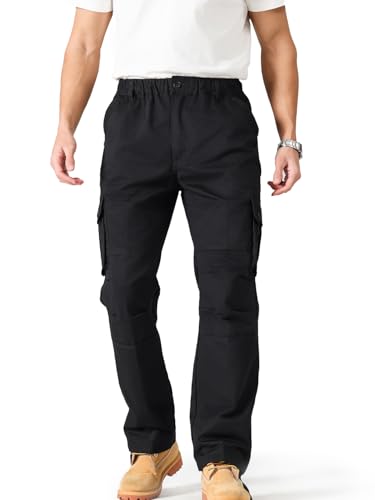 HOT ! Cargo Pants for Men|Elastic Waist, 6 Pockets & Adjustable Cuffs|Cotton Fabric for Work, Casual & Daily Wear