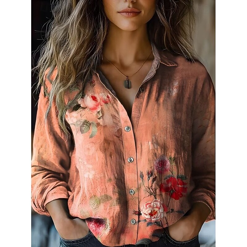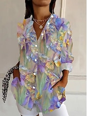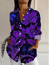 More information about Women's Shirt Button Down Tunic Shirt Collar Long Sleeve Floral Graphic Abstract Vintage Tropical Daily Regular Tops Work Daily Holiday s Print Black Pink Purple Orange Light Blue Summer