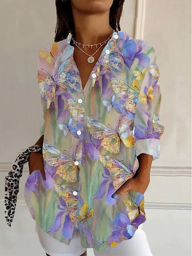 HOT ! Women's Shirt Button Down Tunic Shirt Collar Long Sleeve Floral Graphic Abstract Vintage Tropical Daily Regular Tops Work Daily Holiday s Print Black Pink Purple Orange Light Blue Summer