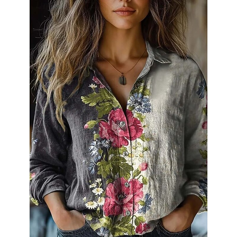 Women's Shirt Button Down Tunic Shirt Collar Long Sleeve Floral Graphic Abstract Vintage Tropical Daily Regular Tops Work Daily Holiday s Print Black Pink Purple Orange Light Blue Summer 2