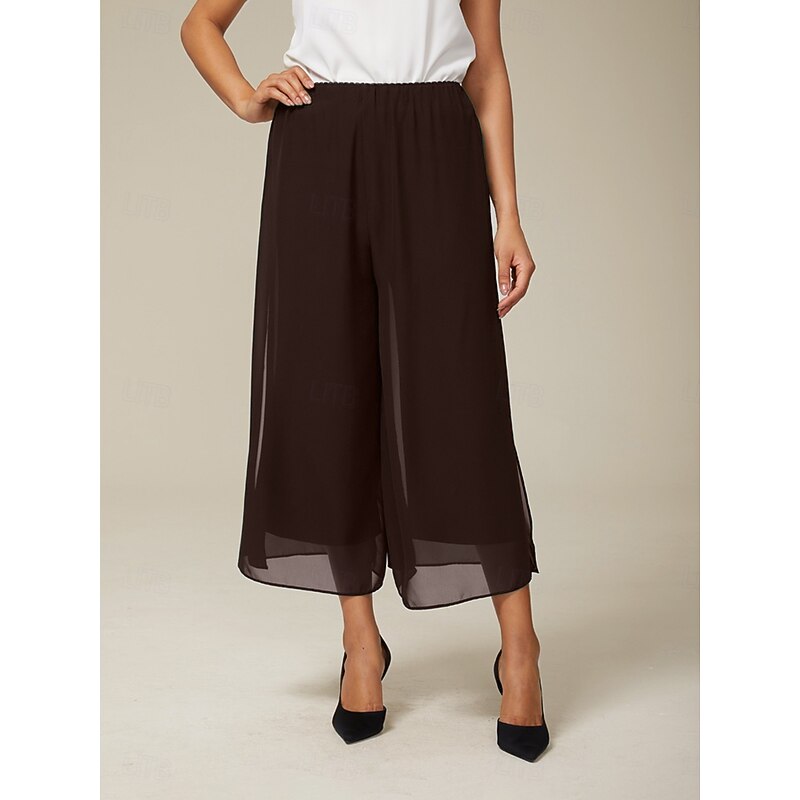 More information about Women's Culottes Wide Leg Vacation Classic Calf-Length Mid Waist Elastic Waist Stylish Fashion Stretchy Formal Office Dailywear Brown Summer Spring Fall