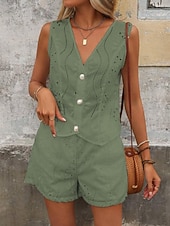 More information about Women's Fashion Streetwear Daily Blouse Baggy Shorts Sleeveless Crew Neck Plain Hole Casual Daily Black White Army Green Summer Regular Fit
