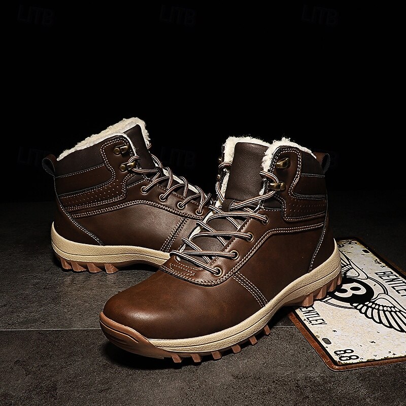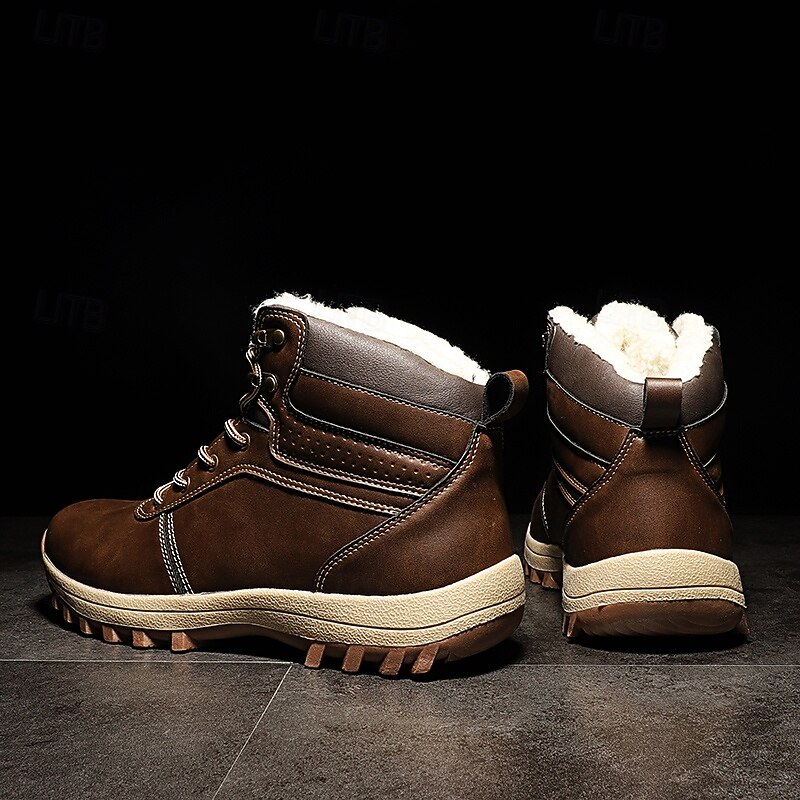 Men's Classic Tan Faux Leather Lace-Up Work Boots – Durable Outdoor Safety Ankle Boots for Construction, Hiking and Daily Wear 28