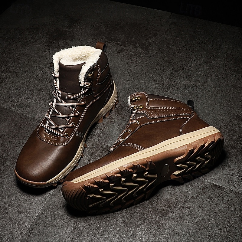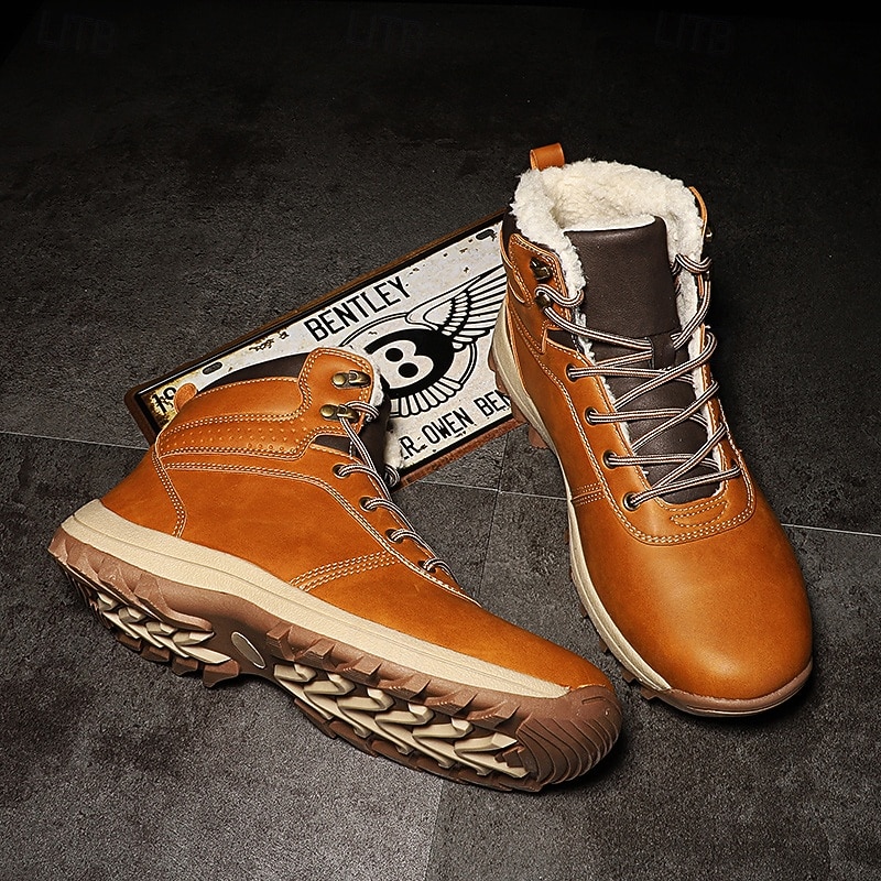 HOT ! Men's Classic Tan Faux Leather Lace-Up Work Boots – Durable Outdoor Safety Ankle Boots for Construction, Hiking and Daily Wear