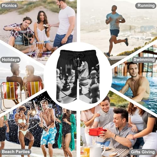 More information about Mens Shorts Black and White Chess Men Swim Trunks Quick-Dry Beach Shorts with Drawstring Pocket Bathing Suit