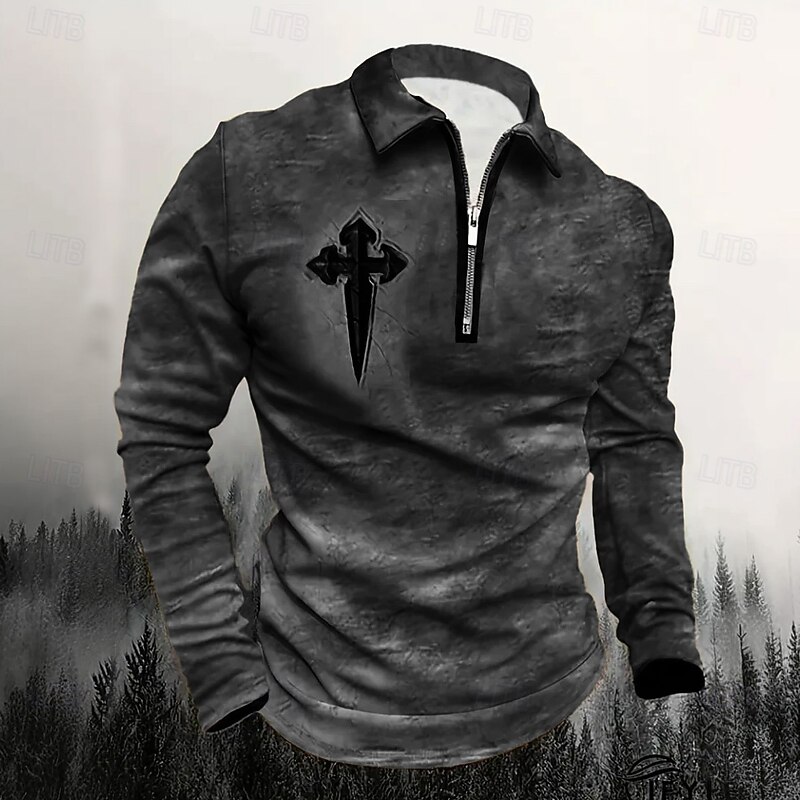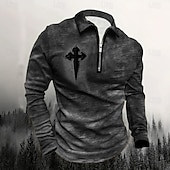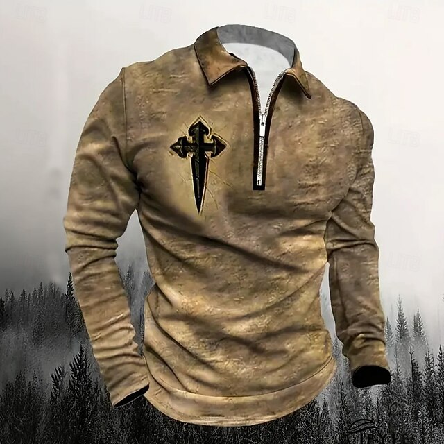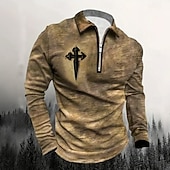 More information about Male Graphic Cross Polo Long Sleeve Turndown Vintage Style Casual Sports & Outdoor Athleisure Casual Daily Zipper 3D Print Spring Fall Winter Dark Grey Blue Brown