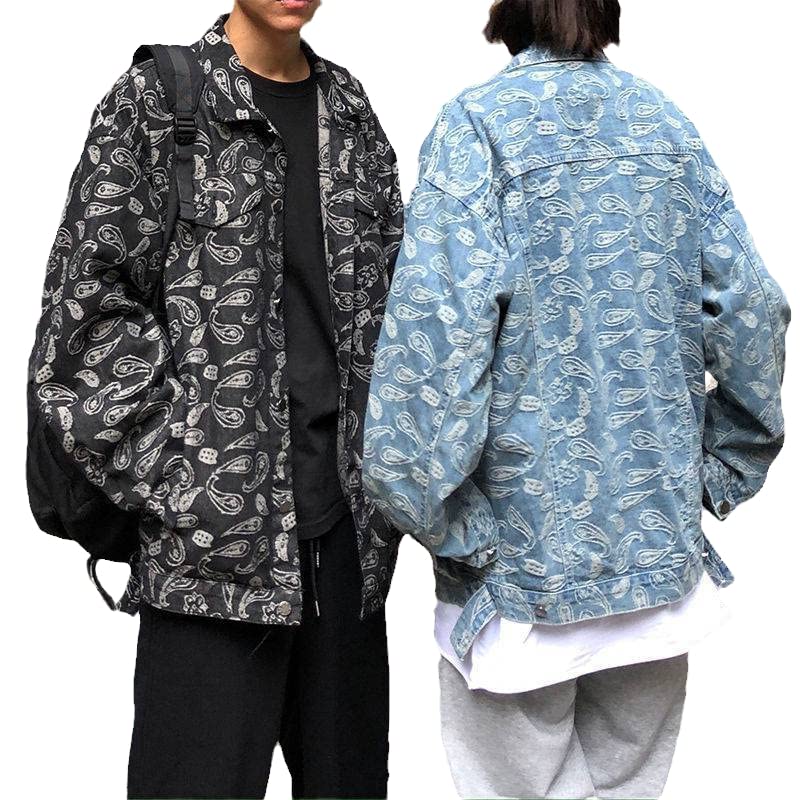 More information about Bandana Paisley Embroidery Men's Denim Jacket Male Streetwear Casual Jeans Coat Oversize Clothes Spring Cowboy