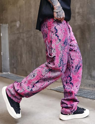 Men Jacquard Weave Denim Jeans Loose Wide Leg Pants 5
