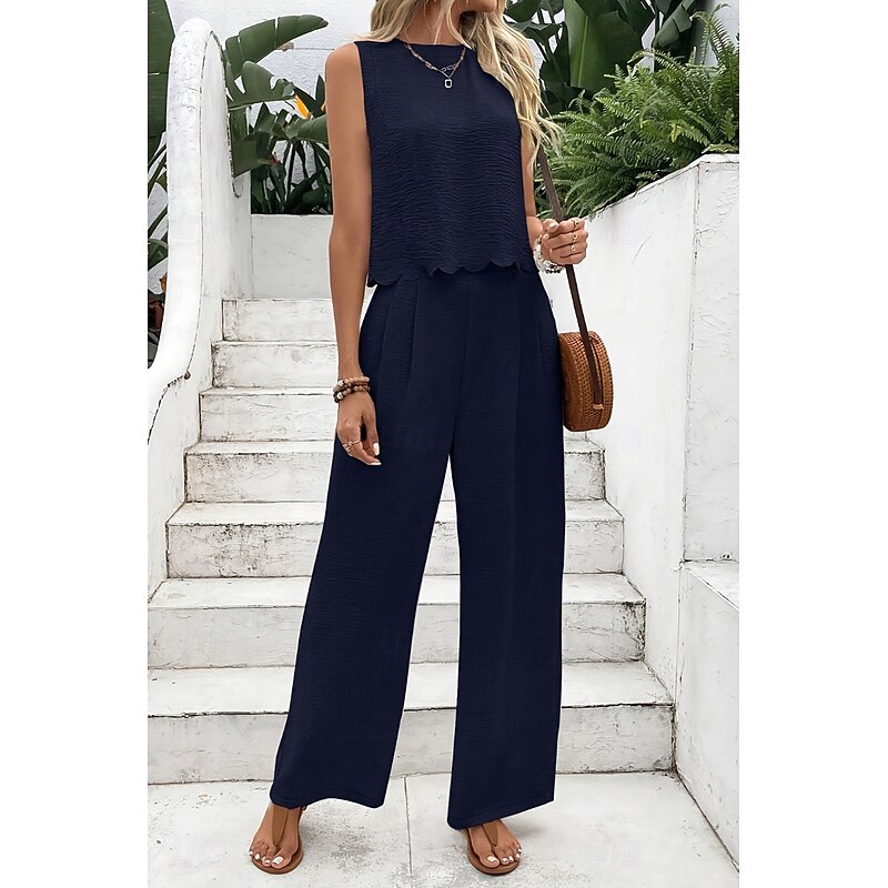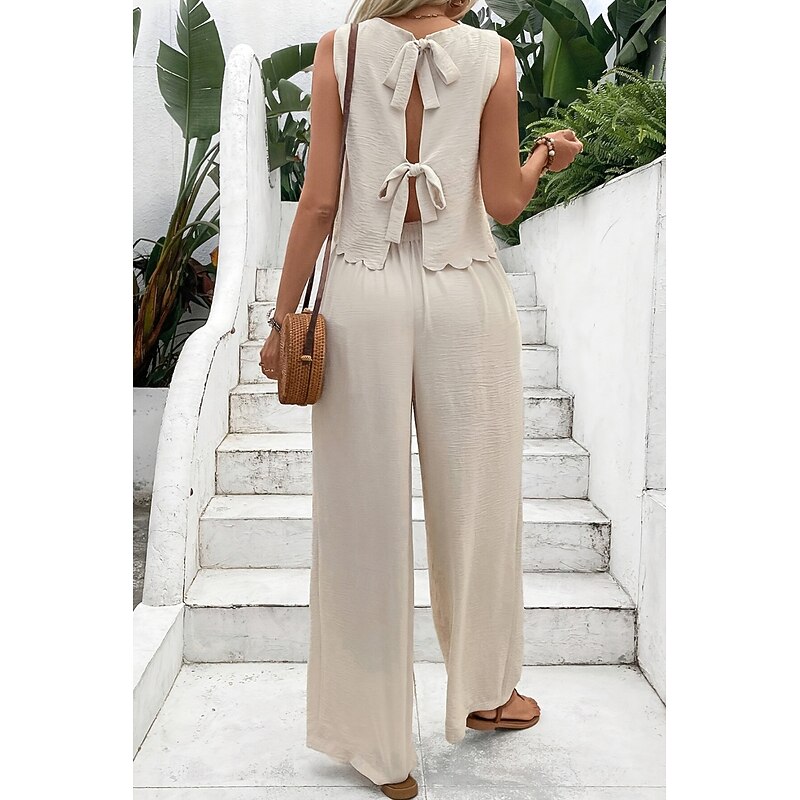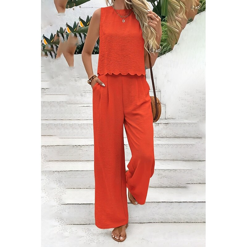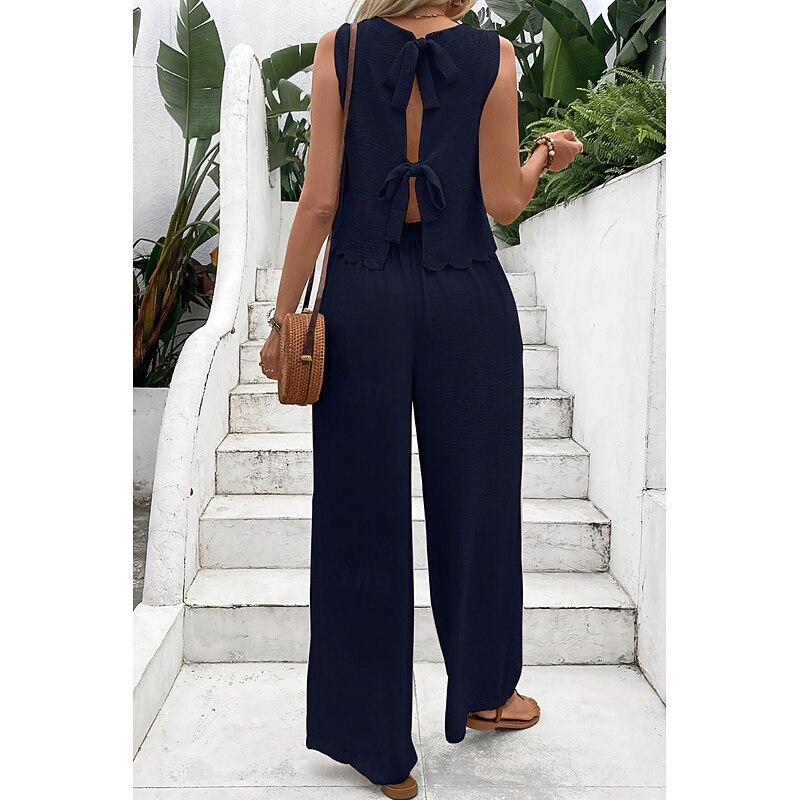 HOT ! Women's Active Streetwear Blouse Pants Sets Sleeveless Crew Neck Solid Color Backless Going out Weekend Black Dark Navy Orange Summer Regular Fit