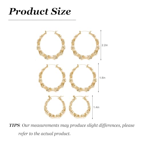• GOLD BAMBOO EARRINGS FOR WOMEN: The gold bamboo hoop earrings for women can be matched with different styles of clothing to meet your fashion needs, it can be matched with dresses, sweaters and shirts to show your exquisite fashion.