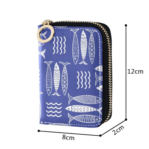 HOT ! susiyo Cute Sardines and Wave Credit Card Wallet for Ladies, Zipper Card Cases Holder for Women, Women's Leather Wallet Coin Purse