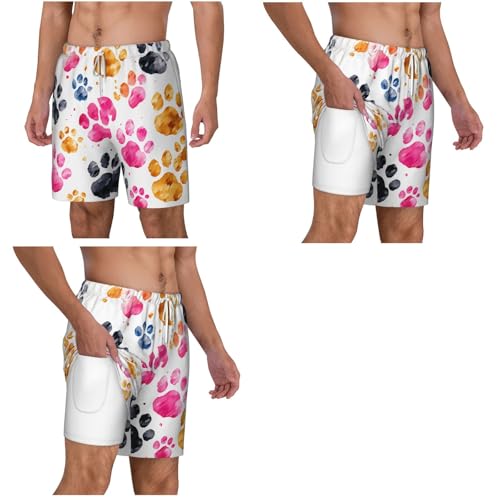 Men's Swim Trunks swift Dry Board Shorts Colorful Dog Paws Beach Shorts with Pocket Bathing Suits for Men
