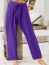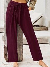 More information about Women's Pants Trousers Casual Daily Full Length Plain Drawstring Side Pockets Breathability Comfortable Micro-elastic Going out Weekend Black Wine Blue Purple Spring & Summer Regular Fit