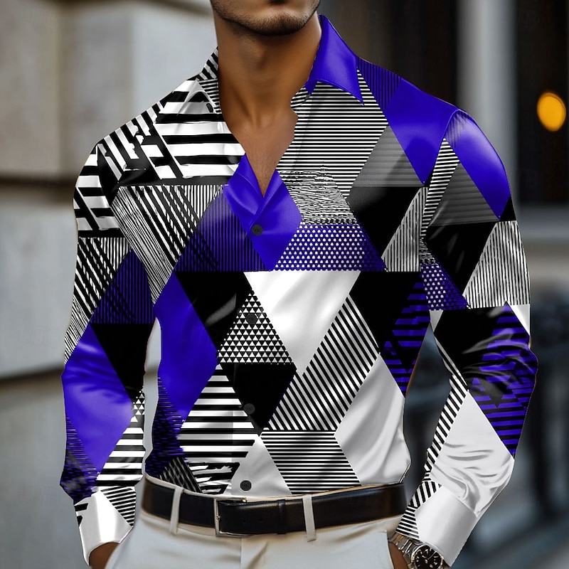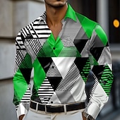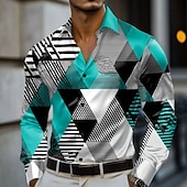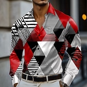More information about Men's Geometric Color Block Shirt Satin Shirt Dress Shirt Long Sleeve Fashion Casual Vacation Dailywear Summer Spring Fall Turndown 3D Print Button Up Shirts Red Blue Purple Green