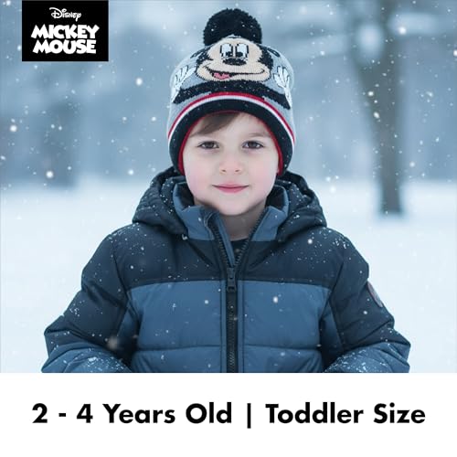 Disney Boys Toddler Winter Hat with Knit Mittens and Insulated Ski Mitten Set, Mickey Mouse For Age 2-4 5