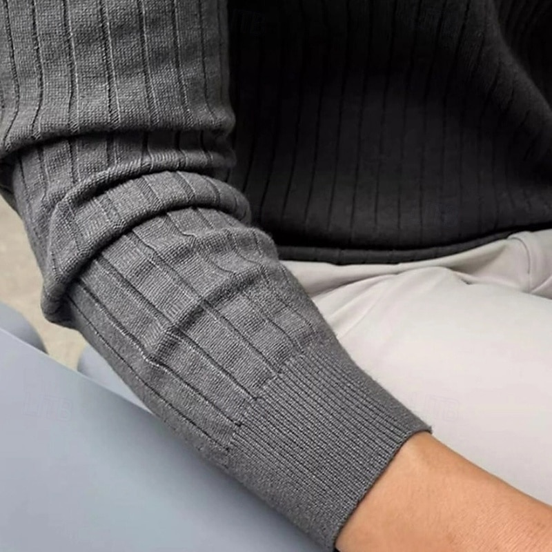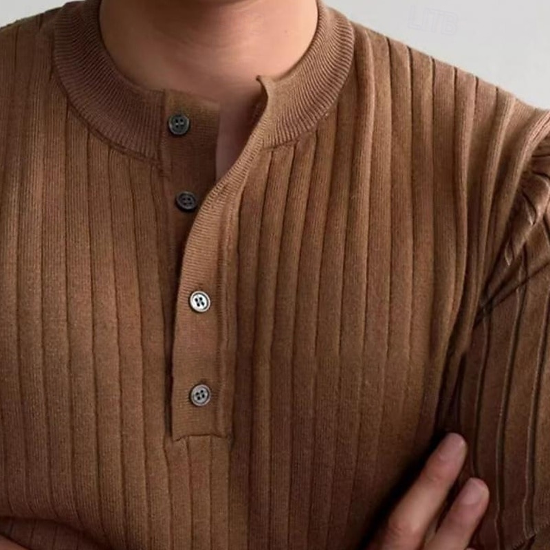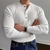 More information about Men's Sweater Pullover Sweater Jumper Ribbed Knit Regular Tops Knitted Slim Fit Plain Henley Knitwear Contemporary Casual Daily Wear Clothing Apparel Fall Black White M L XL