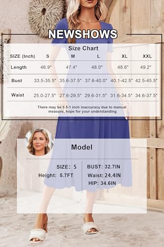 HOT ! Newshows Women's Summer Square Neck Ribbed Knit Short/Long Sleeve A Line Flowy Midi Dress with Pockets