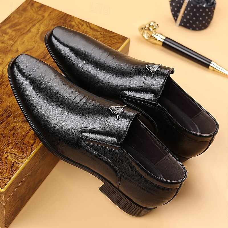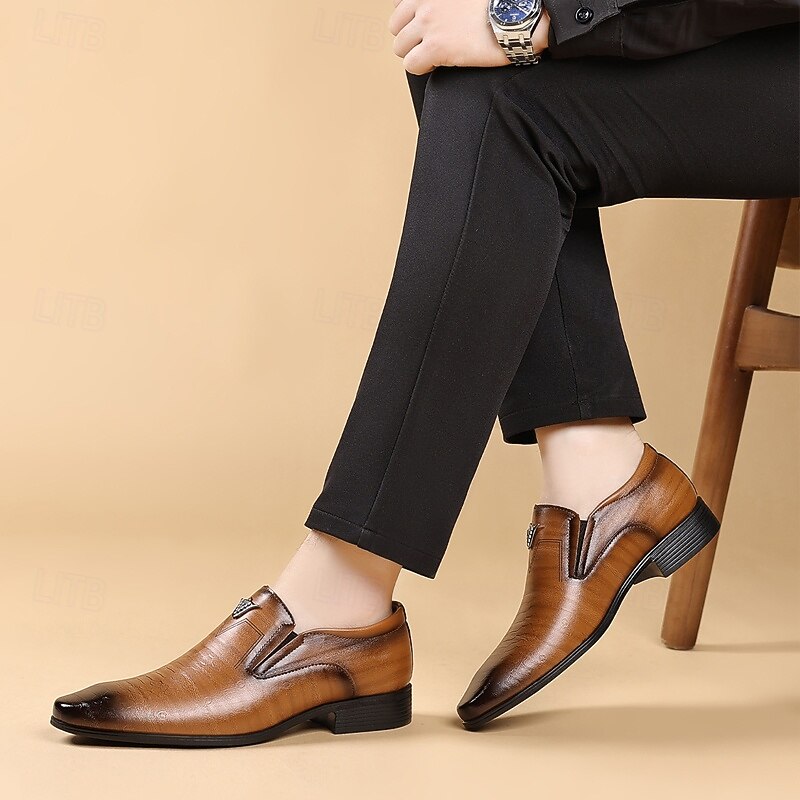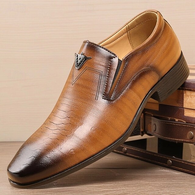 Men's Brown Faux Leather Slip-On Loafers – Crocodile Pattern Business Dress Shoes for Formal Occasions and Evening Parties 14