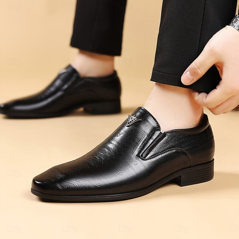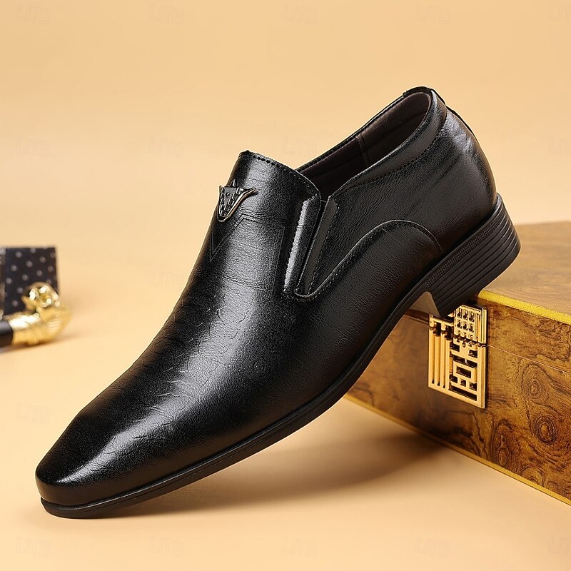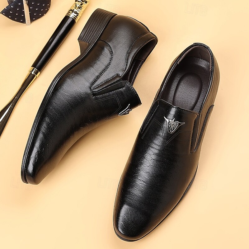 HOT ! Men's Brown Faux Leather Slip-On Loafers – Crocodile Pattern Business Dress Shoes for Formal Occasions and Evening Parties