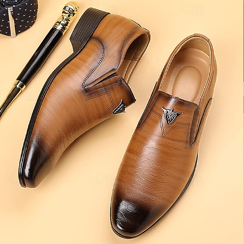 Men's Brown Faux Leather Slip-On Loafers – Crocodile Pattern Business Dress Shoes for Formal Occasions and Evening Parties 1