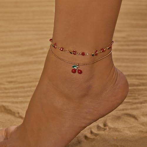 • ELEGANT DESIGN: Dainty cherry charm anklet features a delicate and feminine design perfect for summer fashion and beach outfits