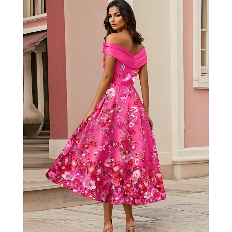A-Line CocktailDresses Elegant Dress Formal Wedding Tea Length Sleeveless Shirt Collar Satin with Pleats Ruched Embroidered Applique 13