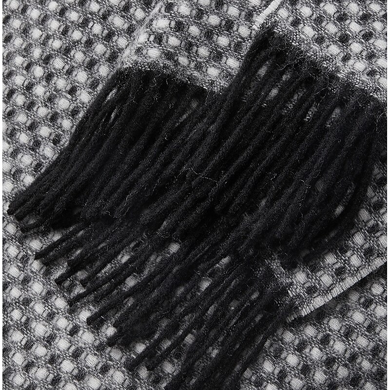 Men's 100% Wool Rectangle Scarf School Christmas Outdoor Black Ivory Scarf 18