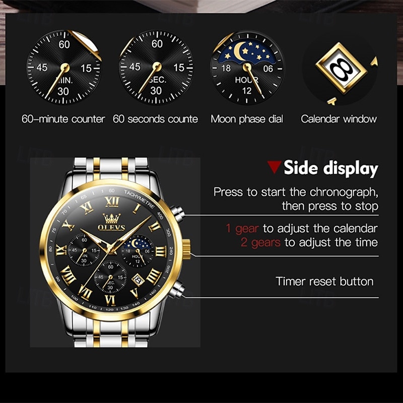 More information about New Olevs Olevs Brand Fashion Trend Men'S Business Watch Luminous Chronograph Calendar 24-Hour Indication Multifunction Quartz Watch Casual Waterproof Sports Men'S Steel Band Wristwatch
