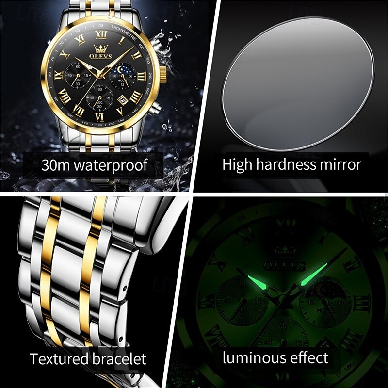 New Olevs Olevs Brand Fashion Trend Men'S Business Watch Luminous Chronograph Calendar 24-Hour Indication Multifunction Quartz Watch Casual Waterproof Sports Men'S Steel Band Wristwatch 4