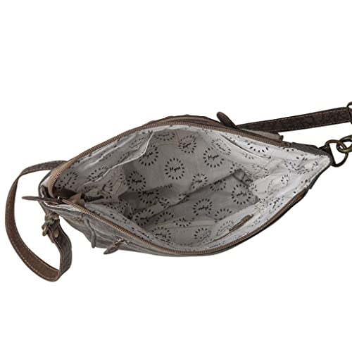 HOT ! Myra Bag Canvas Zipper Bag - Delcatty Leather, Rug, and Canvas Crossbody Bag for Women, Aztec Design in Hues of Green, Brown, and Yellow, Zipper Pouch with Adjustable Strap