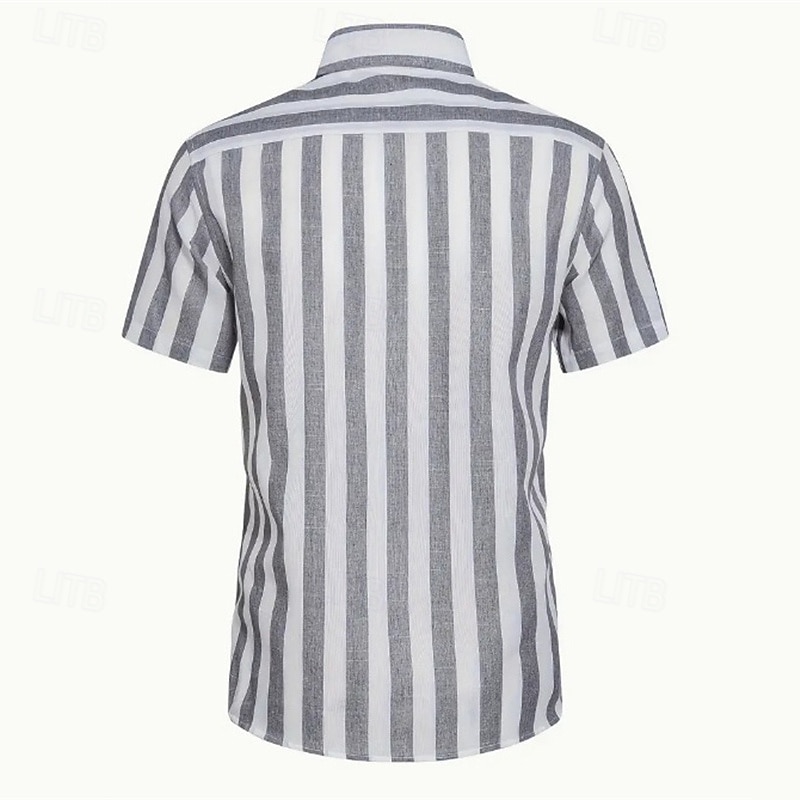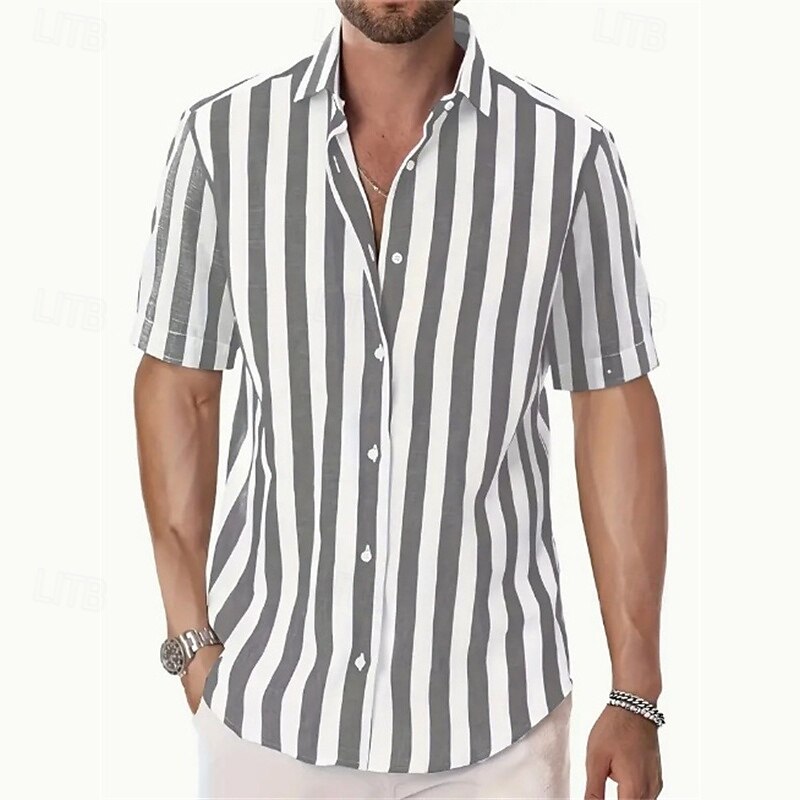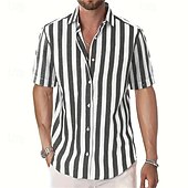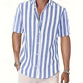Highlights - Perfect for summer days - Lightweight polyester fabric - Comfortable short sleeves - Casual style for men - Ideal for vacation wear - Stylish striped pattern - Features trendy button design - Fashionable lapel neckline